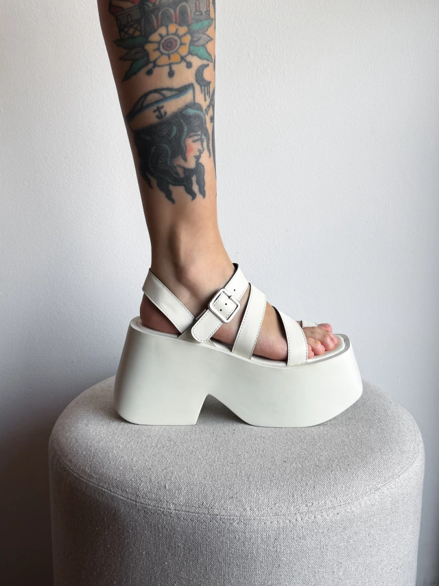 Aposte na Sandália Alanis Milk, a combinação perfeita entre beleza, atitude e conforto. Com salto robusto de 9 cm e meia pata de 6 cm, ela oferece estabilidade e uma presença marcante. O cabedal com tiras diagonais valoriza o desenho dos seus pés, garantindo um visual único e arrojado. Não perca tempo, garanta a sua Alanis e arrase nos looks de verão com estilo e confiança!